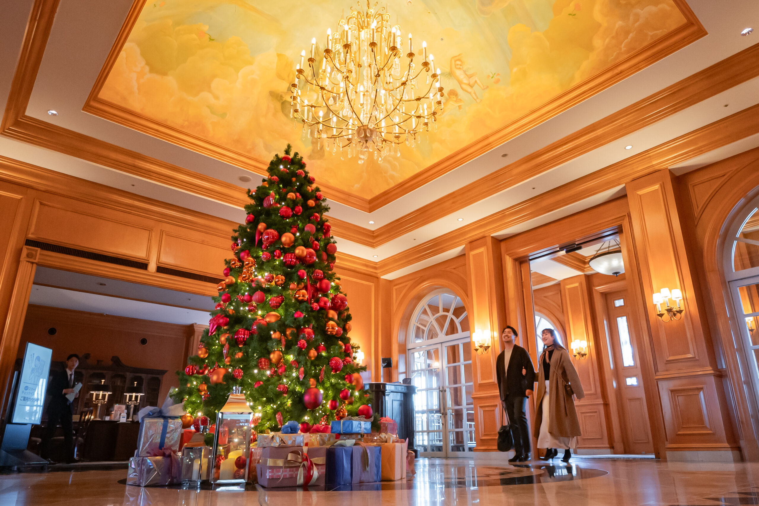 中に入ると、見上げる程高い天井の吹き抜けのロビーが印象的なリゾートホテル。大きな窓の外には碧い海、春の柔らかい日差しがたっぷりと降り注ぎます。まるで海外 の豪華客船のような内装に心躍らずにはいられません。
